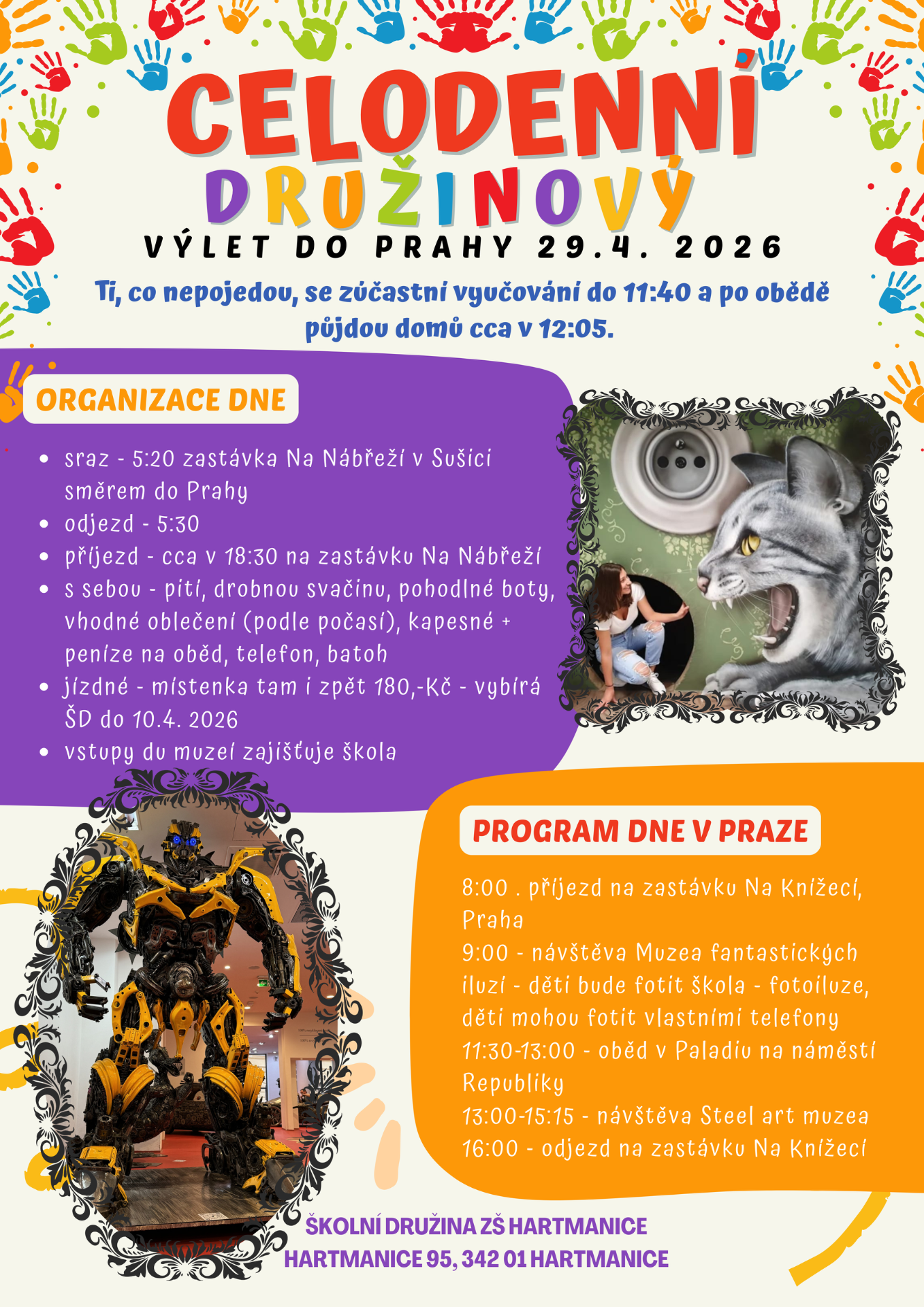 9:00 - návštěva Muzea fantastických iluzí - děti bude fotit škola - fotoiluze, děti mohou fotit vlastními telefony